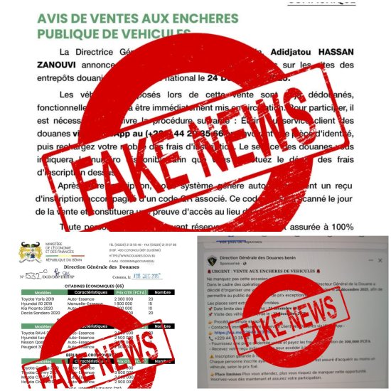 Une fausse annonce de vente aux enchères publique de véhicules attribuée à la Direction générale des Douanes circule depuis quelques heures sur les réseaux sociaux.