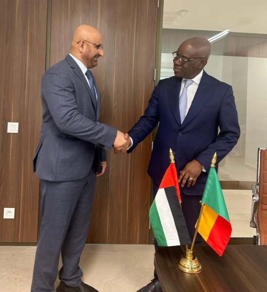 L’entretien entre Son Excellence Mohammed Saeed Al Kaabi et le ministre José Didier Tonatoa a porté sur les moyens de renforcer la coopération entre les Emirats arabes unis et le Bénin dans les domaines du développement durable, de l’énergie, des transports et des mines, ainsi que sur l’échange d’expertises techniques et la création de partenariats dans des secteurs d’intérêt commun.