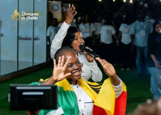 Ambiance électrique au Palais des congrès de Cotonou. À 20 h 54 ce lundi 1er décembre 2025, la cheffe Keith Sonon apparaît, drapeau vert-jaune-rouge du Bénin à l’épaule. La foule l’accueille dans un bain d’applaudissements. Certains chantent. D’autres lèvent des plats sur lesquels ils tapent en se servant de cuillères. L’hymne national retentit. A la fin, le public reprend en langue nationale Fon.