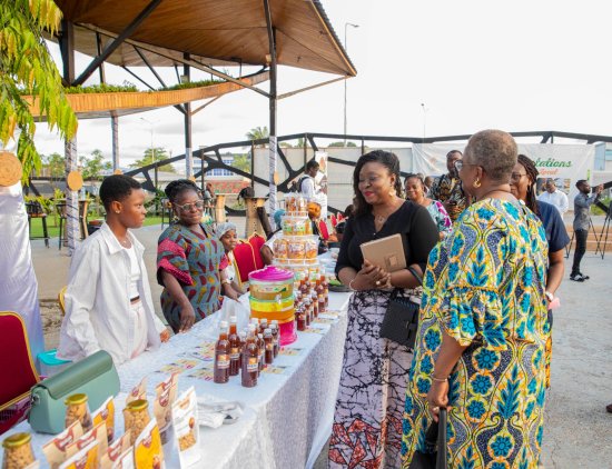 Au fil des stands au Centre communautaire EYA ce vendredi 17 octobre, les visiteurs ont pu découvrir les saveurs 100% du Bénin : Chocolat, biscuits, farines de céréales, chips, miel multifloral, riz local, jus de fruits, huiles essentielles thérapeutiques à base de plantes locales…