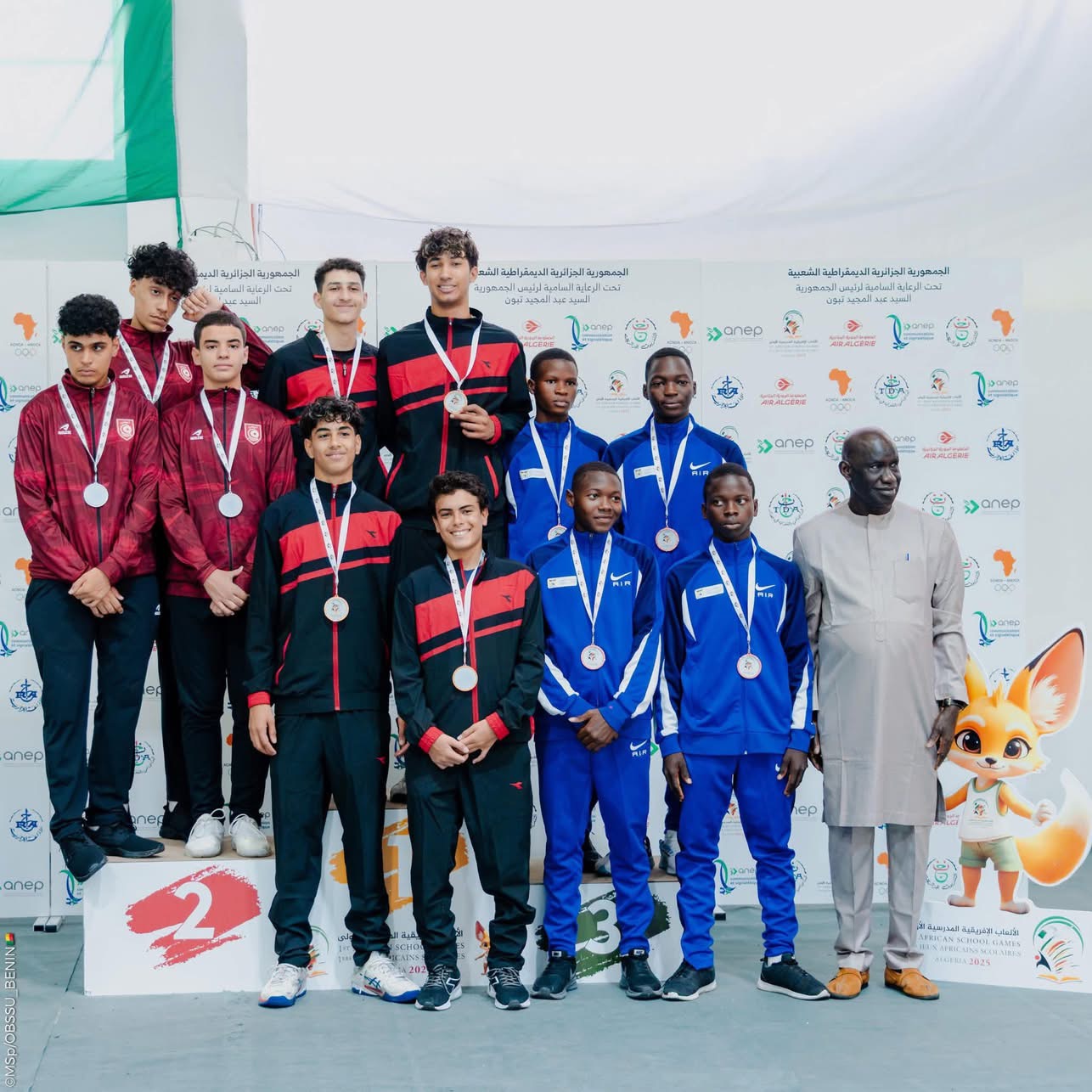 87 jeunes sportifs béninois engagés dans 8 disciplines (football, basket-ball 3×3, handball, beach-volley, athlétisme, escrime, badminton, tennis), participent aux Jeux Africains Scolaires 2025 qui se déroulent en Algérie du 26 juillet au 05 août 2025. Au-delà de l’escrime, le Bénin enchaîne les performances en athlétisme, en handball. En athlétisme, Ruffine Sonon a obtenu l’Or au 800 m.