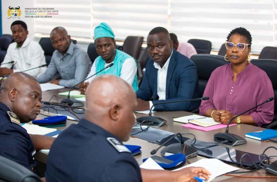 Le Directeur Général de la Police républicaine, les commandants de l’Unité spéciale de protection des biens culturels et de l’Unité spéciale de protection des sites balnéaires - zones côtières ont rencontré, mercredi 24 septembre 2025, le ministre du Tourisme, de la Culture et des Arts en compagnie des directeurs techniques du Ministère.