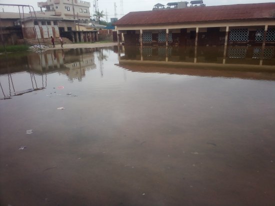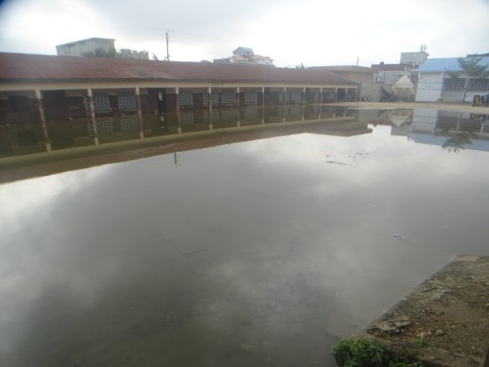 L’école est inondée à chaque saison des pluies et cela dure depuis une décennie. Face à la situation, la mairie de Cotonou procède à des travaux de remblais chaque année.