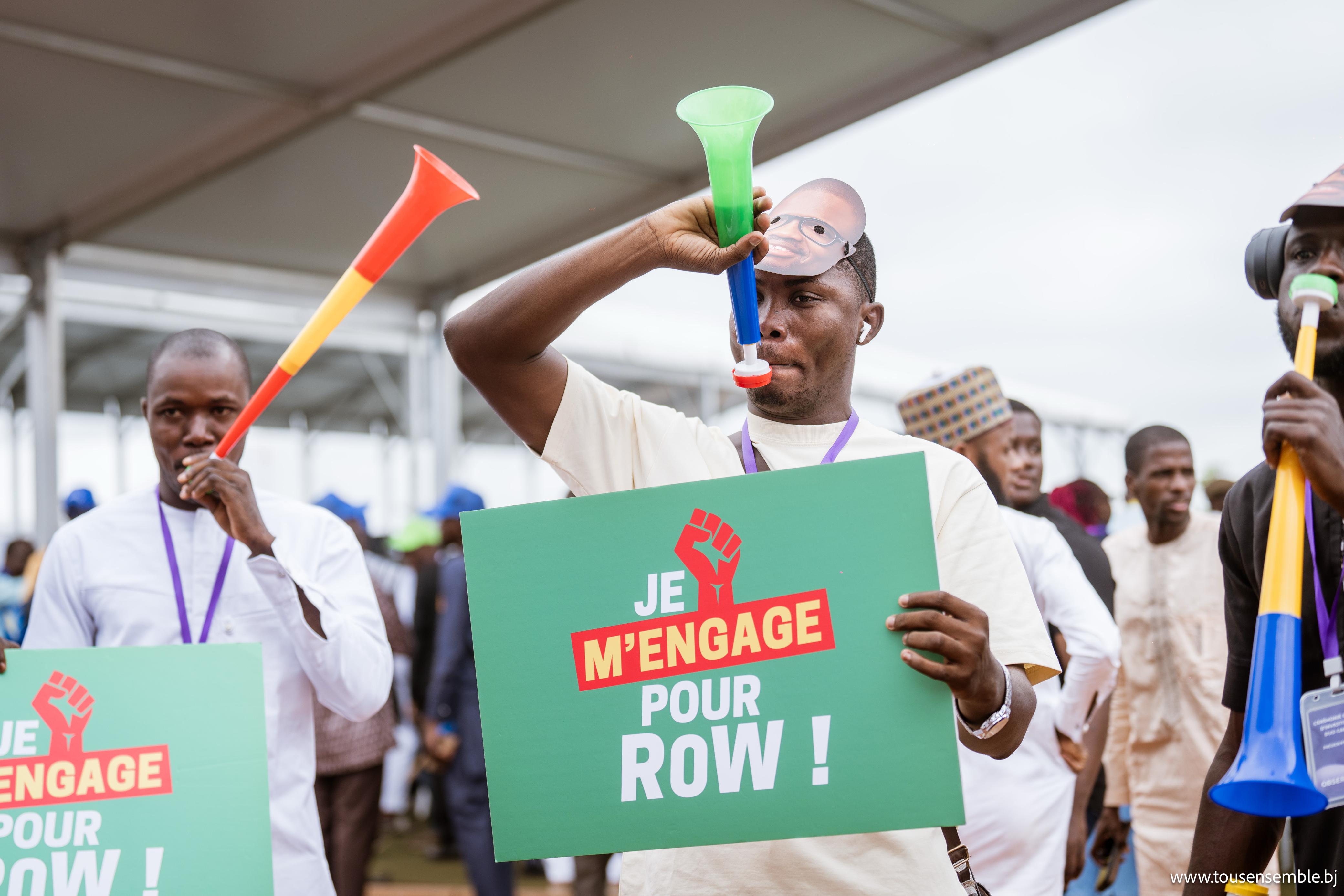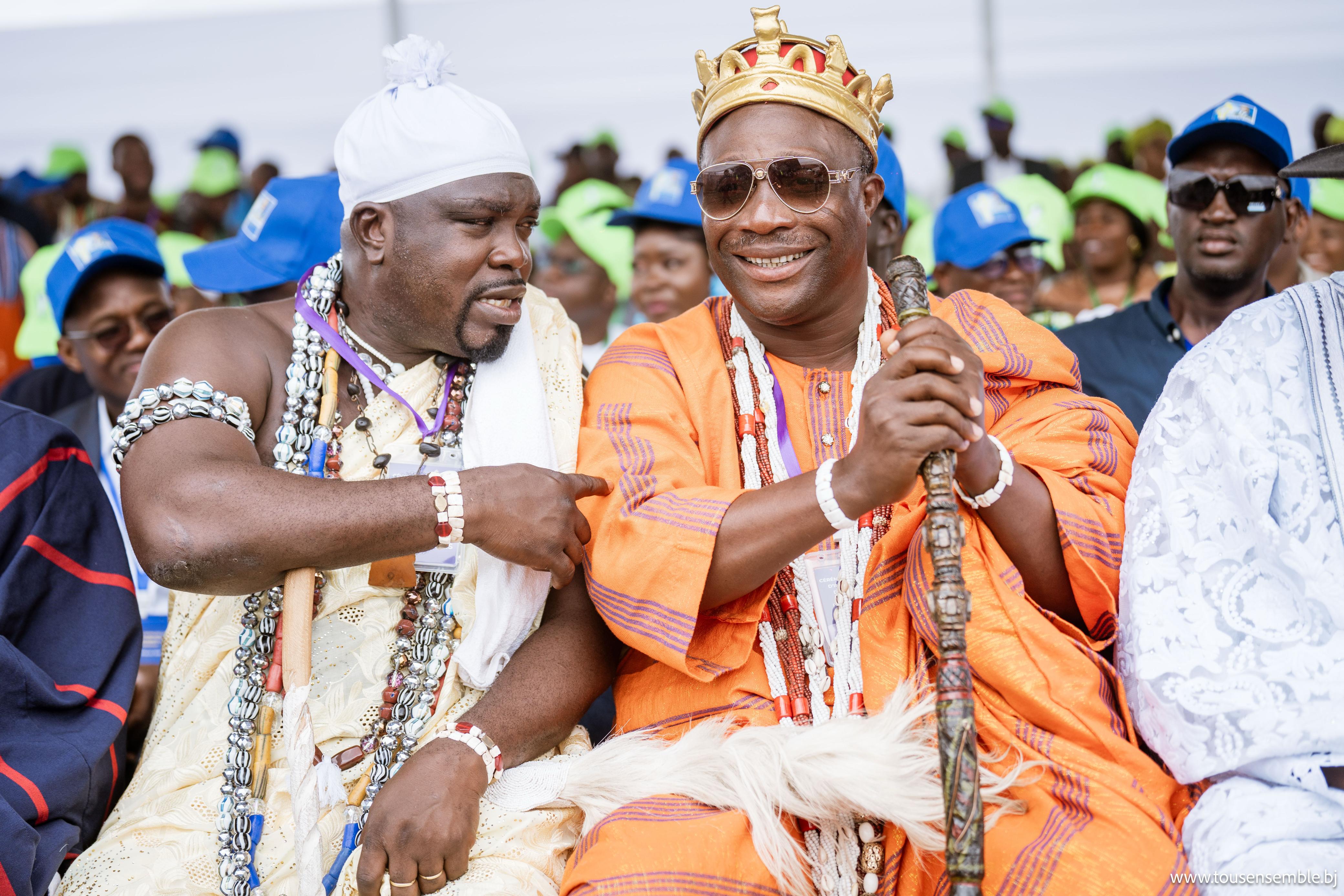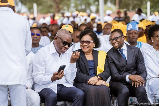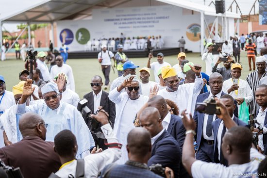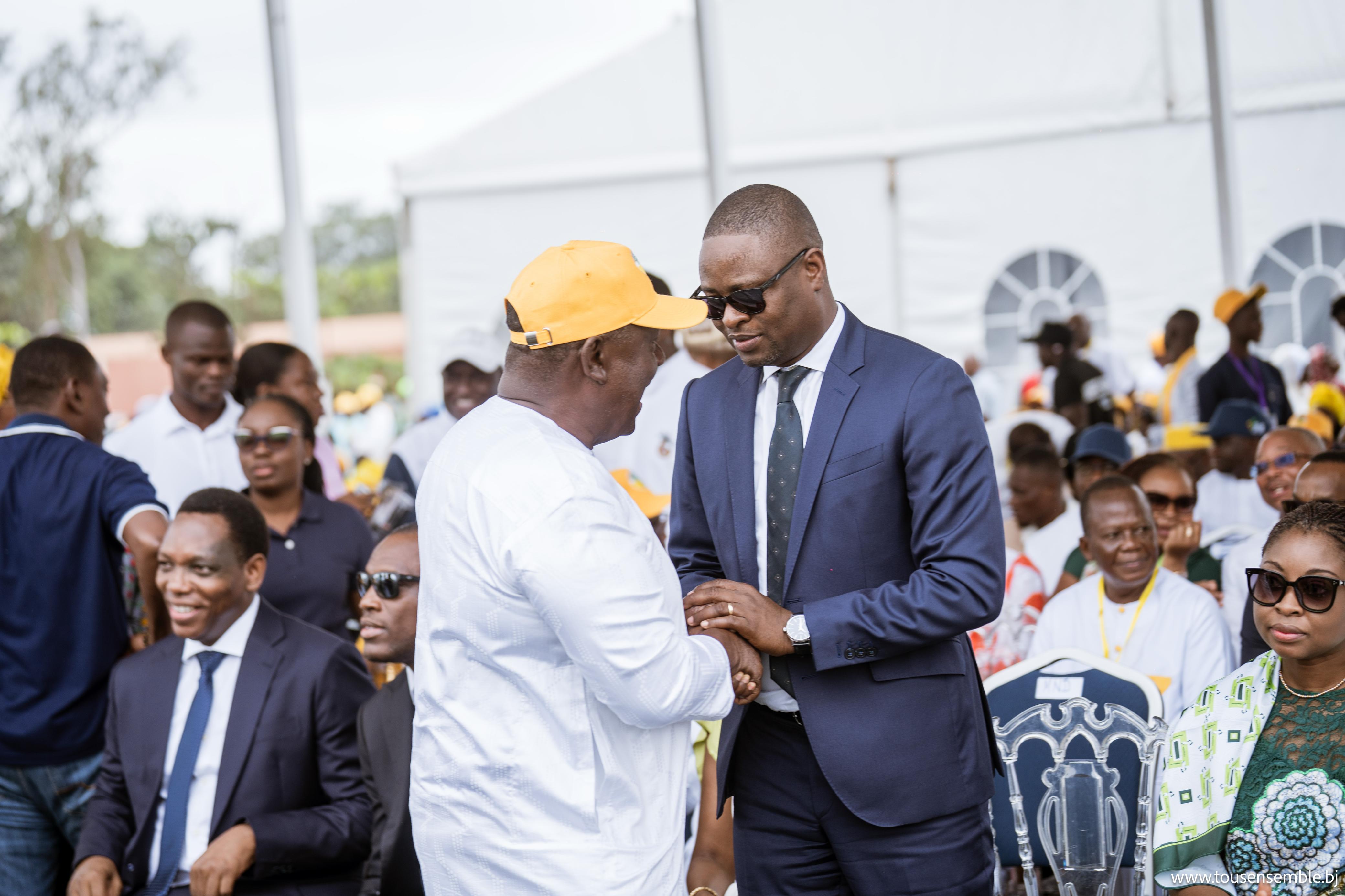 Le stade municipal de Parakou a accueilli ce samedi 04 octobre 2025, la cérémonie d’investiture de Romuald Wadagni-Mariam Talata, duo candidat de la mouvance à l’élection présidentielle 2026. Tous les présidents des quatre partis politiques de la majorité présidentielle (UPR, BR, Moele Bénin et Renaissance Nationale ) ainsi que le président de l’Assemblée nationale sont présents à Parakou. Les militants ont fait massivement le déplacement. Le stade municipal de Parakou est plein comme un oeuf. En images, les temps forts de cette cérémonie.