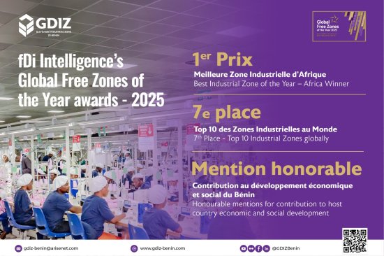 La Zone industrielle de Glo-Djigbé (GDIZ), hub industriel béninois développé par la Société d’investissement et de promotion de l’industrie (SIPI-BENIN S.A.), a remporté trois distinctions majeures aux fDi Global Free Zones of the Year Awards 2025, organisés par fDi Intelligence.