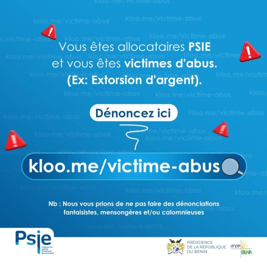 Les allocataires du Programme Spécial d’Insertion dans l’Emploi (PSIE), victimes d’abus peuvent faire des dénonciations sur : kloo.me/victime-abus