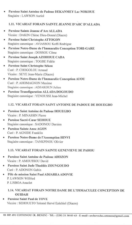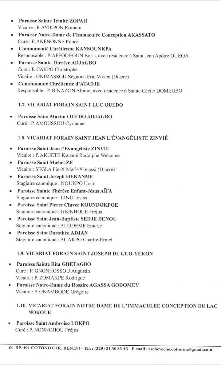 L’archevêque de Cotonou, Mgr Roger Houngbédji, a dévoilé les nouvelles nominations de curés et vicaires pour l’année pastorale 2025-2026. Retrouvez ci-dessous la liste complète des affectations au sein de l’Église catholique au Bénin.