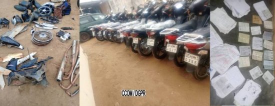 Le commissariat du 13ᵉ arrondissement de Cotonou a démantelé un réseau spécialisé dans le vol, la transformation et la revente de motos munies de faux papiers. Trois suspects ont été interpellés et douze engins retrouvés, partiellement ou totalement maquillés..