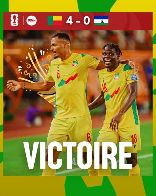 Les Guépards du Bénin ont battu la sélection nationale du Lesotho par un score fleuve de 4 buts à 0 dans la soirée de ce mardi 9 septembre 2025, dans le cadre de la 8e journée des éliminatoires du Mondial 2026.