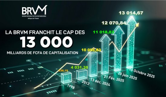 record de 13 014,67 milliards FCFA. Ce niveau inédit témoigne du dynamisme exceptionnel de notre place financière régionale, commune aux huit pays membres de l’Union Économique et Monétaire Ouest-Africaine (UEMOA).